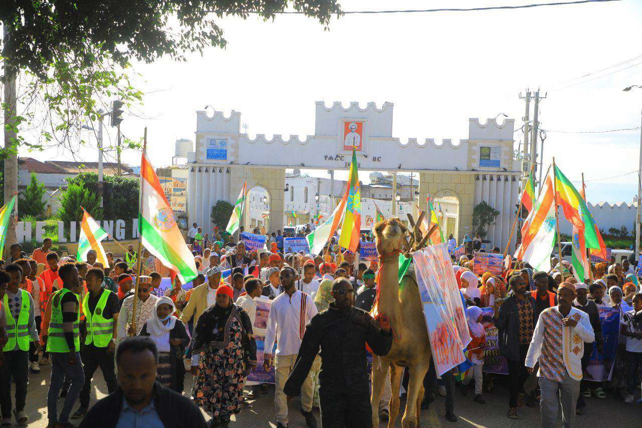 የሐረሪ ክልል ነዋሪዎች ታላቁ የኢትዮጵያ ሕዳሴ ግድብ መጠናቀቅን አስመልክተው የድጋፍ ሰልፍ በማካሄድ ላይ ይገኛሉ።