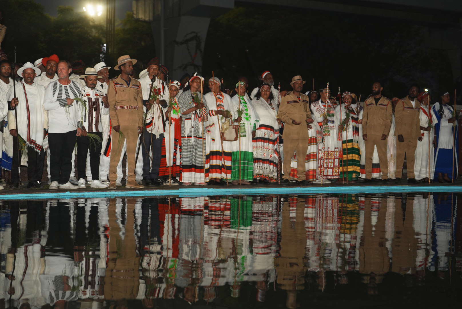 እናቶች እና አባቶች፣ ቄሮ እና ቀሬዎች ለምለም ሳር እና አደይ አበባ ይዘው “መሬ ሆ…!” እያሉ ታላቅ እልልታ እና ምስጋና አቅርበዋል።