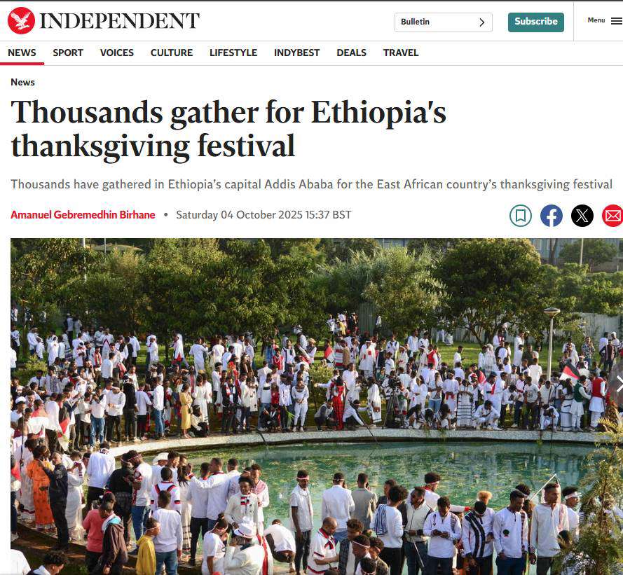ኢንዲፔንደንት በበኩሉ በኢትዮጵያ ዋና ከተማ አዲስ አበባ በሺዎች የሚቆጠሩ ታዳሚዎች የሚሰበሰቡበት እና በየዓመቱ የሚከበረው የምስጋና ፌስቲቫል ሲል ስለ ኢሬቻ ሆረ ፊንፊኔ ክብረ በዓል አስነብቧል፡፡