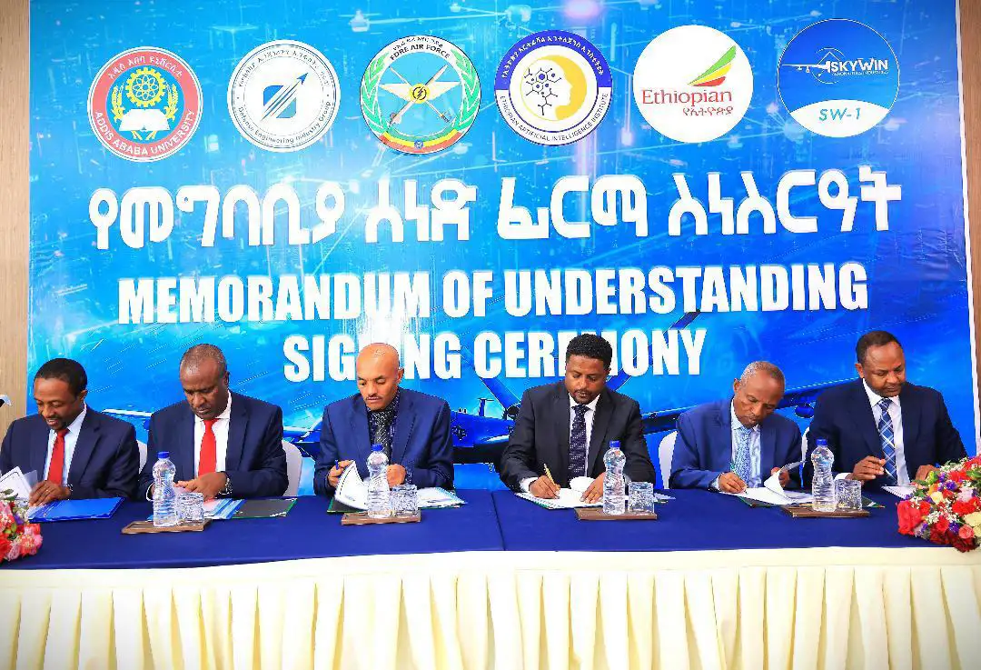 ስካይዊን ኤሮኖቲክስ ኢንደስትሪ በሀገር ውስጥ ማምረት የጀመራቸውን ድሮኖች ምርት በማስፋት የድሮን ቴክኖሎጂን በምርምር እና ሥርፀት ለማሳደግ እንዲሁም ተግባራዊ ተሞክሮን ለማዳበር የሚያግዘውን ትብብር ለመፍጠር ከኢትዮጵያ አየር መንገድ፣ ከኢፌዴሪ አየር ኃይል፣ ከመከላከያ ኢንጂነሪንግ ኢንደስትሪ ግሩፕ፣ ከአዲስ አበባ ዩኒቨርሲቲ እና ከኢትዮጵያ አርቲፊሻል ኢንተለጀንስ ጋር የመግባቢያ ሰነድ ተፈራርሟል፡፡