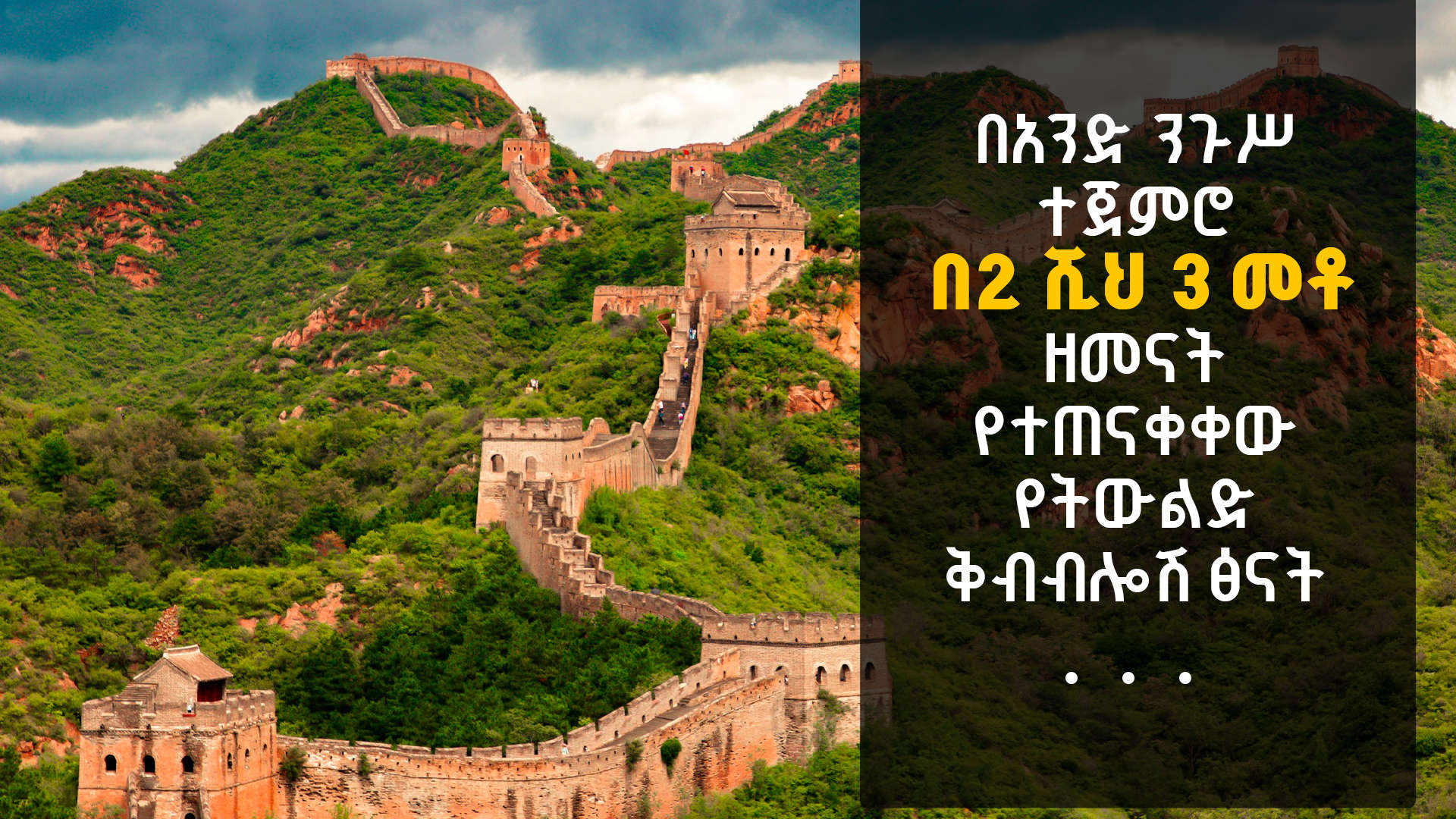 ግንባታው ሁለት ሺህ ዓመታትን የፈጀው እና በትውልዶች ፅናት ለውጤት የበቃው ታላቁ የቻይና ግንብ ከግንባታው ግዝፈት የተነሳ “ድራጎን” አግዟቸው ካልሆነ በቀር በሰው ልጅ አቅም ይህን መስራት አይቻልም እስኪባል ድረስ አስደናቂ ሆኗል።