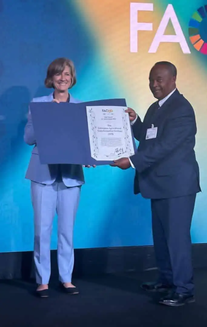 የኢትዮጵያ ግብርና ትራንስፎርሜሽን ኢንስቲትዩት ከዓለም የምግብና እርሻ ድርጅት (ፋኦ) የእውቅና ሽልማት ተበርክቶለታል፡፡
