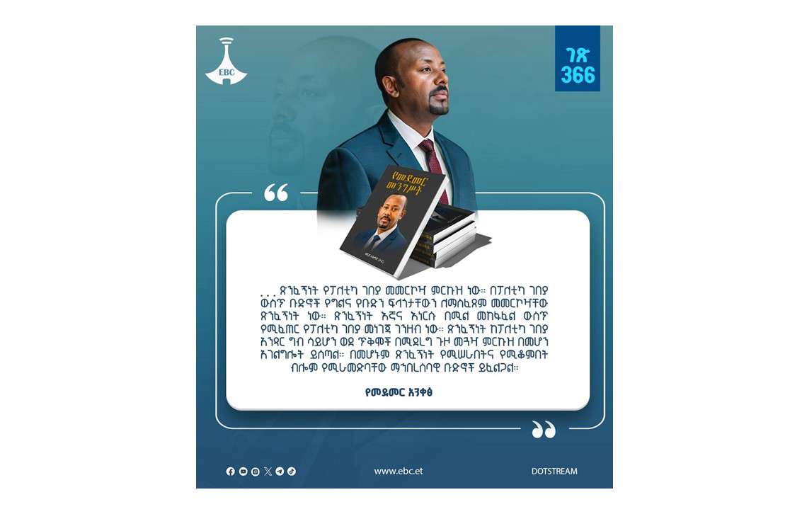 #የመደመር_አንቀፅ እሑድ ጥቅምት 09, 2018 49 "...ጽንፈኝነት የፖለቲካ ገበያ መመርኮዣ ምርኩዝ ነው። በፖለቲካ ገበያ ውስጥ ቡድኖች የግልና የቡድን ፍላጎታቸውን ለማስፈጸም መመርኮዣቸው ጽንፈኝነት ነው። ጽንፈኝነት እኛና እነርሱ በሚል መከፋፈል ውስጥ የሚፈጠር የፖለቲካ ገበያ መነገጃ ገንዘብ ነው።" (#የመደመር_መንግሥት_ገጽ_366) #EBC #ebcdotstream #Medemer አስተያየትዎን እዚህ ያስፍሩ: Send ተያያዥ ዜናዎች: ፓርቲው ዘርፈ ብዙ ስኬቶችን አስመዝግቧል - አቶ አደም ፋራህ እሑድ ጥቅምት 09, 2018 ኢትዮጵያ በባንዳዎች ሴራ ያጣችውን የባህር በሯን በዲፕሎማሲ ለማስመለስ የተጀመረው ጥረት የሚደገፍ ነው - መርከበኛ ፈረደ ፍትሐነገሥት እሑድ ጥቅምት 09, 2018 የአዲስ አበባ ከተማ አስተዳደር የመጀመሪያ ሩብ ዓመት ዕቅድ አፈፃፀም ግምገማ ማካሄድ ጀመረ ቅዳሜ ጥቅምት 08, 2018 በውኃ ተከብባ የባህር በር የተነፈገች ሀገር ሓሙስ ጥቅምት 06, 2018