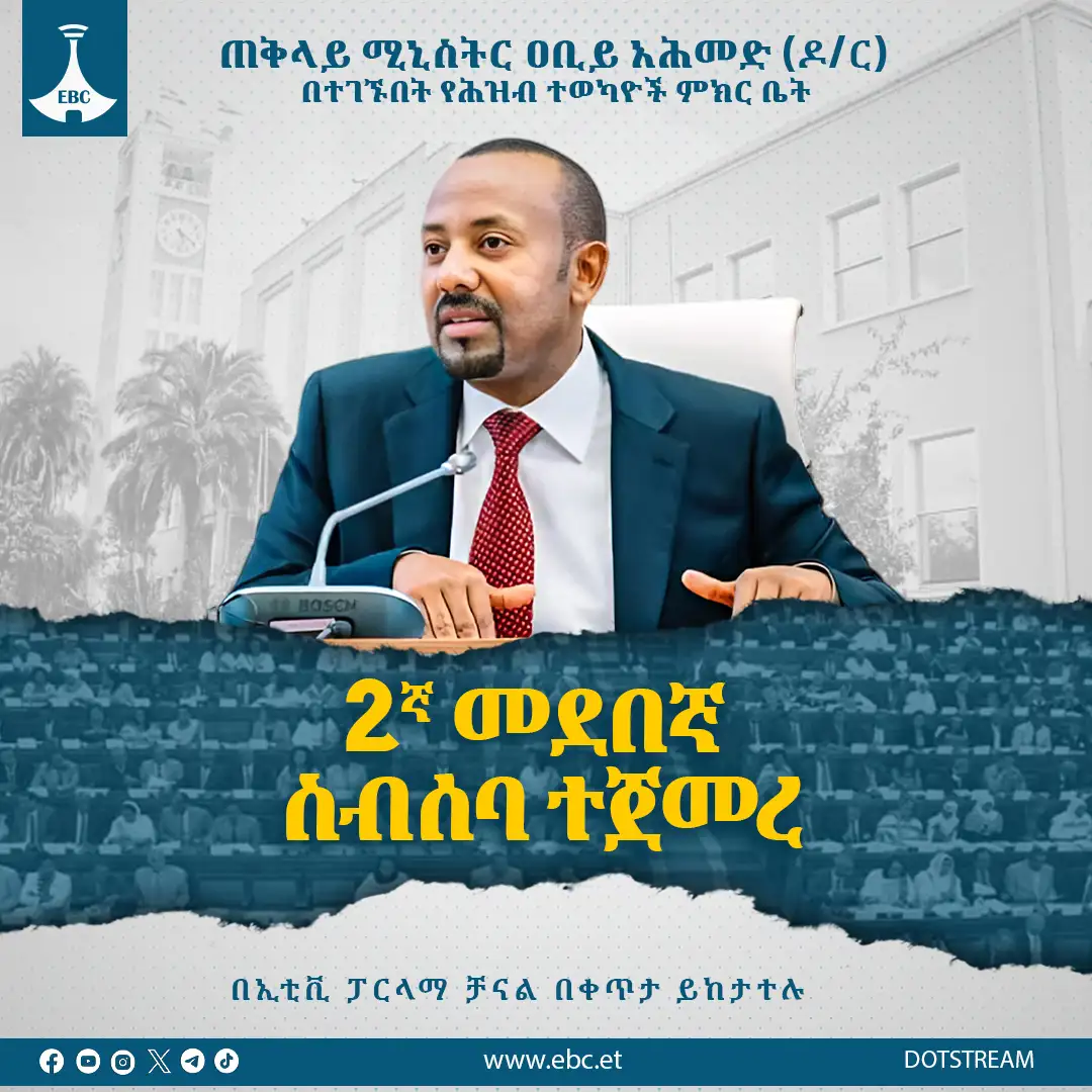 ኢቢሲ የስብሰባውን ሙሉ ሂደት ኢቲቪ ፓርላማ ቻናልን ጨምሮ በሁሉም የብሮድካስት እና የዶትስትሪም ማኅበራዊ ትሥሥር ገጽ አማራጮች በቀጥታ እያስተላለፈ ይገኛል፤ እንዲከታተሉ ጋብዘንዎታል።