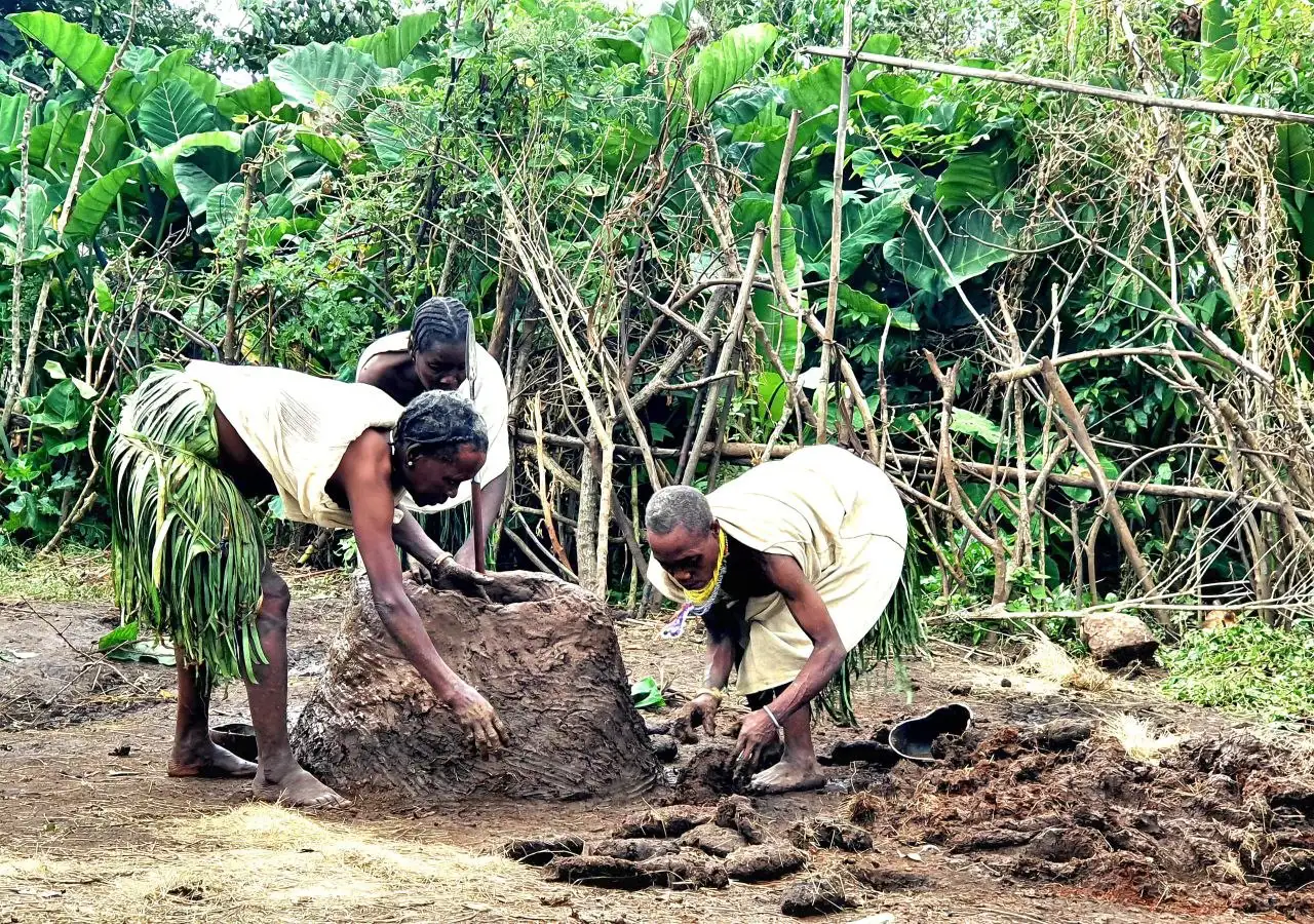 ማዕድን መኖሩ ከታመነ የአካባቢው የሀገር ሽማግሌዎች ይመርቁና ወንዶች የማዕድን ይዘት ያለው አፈር ቆፍረው ያወጣሉ።