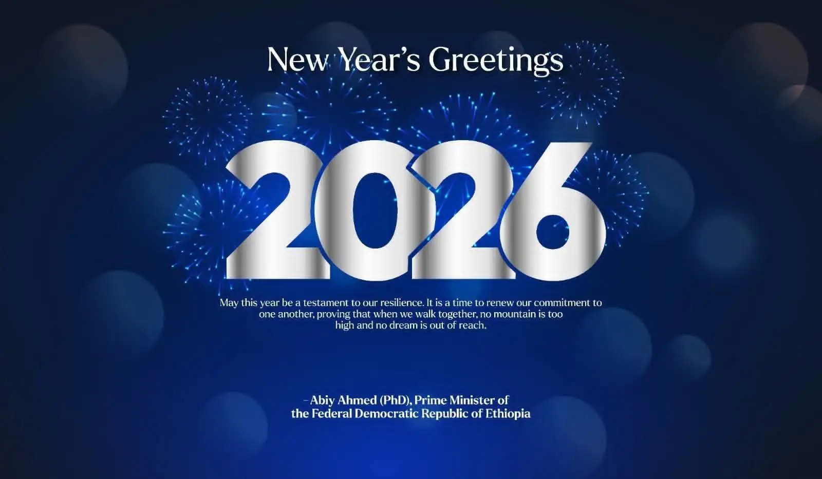 ጠቅላይ ሚኒስትር ዐቢይ አሕመድ (ዶ/ር) የፈረንጆቹን 2026 ለሚያከብሩ የዓለም አቀፉ ማኅበረሰብ አባላት የእንኳን አደረሳችሁ መልዕክት አስተላለፉ ረቡዕ ታኅሣሥ 22, 2018 125 ጠቅላይ ሚኒስትር ዐቢይ አሕመድ (ዶ/ር) የፈረንጆቹን 2026 ለሚያከብሩ የዓለም አቀፉ ማኅበረሰብ አባላት የእንኳን አደረሳችሁ መልዕክት አስተላለፉ። "Remember, you’re 8 years younger though when you #VisitEthiopia " ሲሉም በማኅበራዊ የትስስር ገጻቸው መልዕክት አስተላልፈዋል። አስተያየትዎን እዚህ ያስፍሩ: Send ተያያዥ ዜናዎች: ከጊዜ ወደ ጊዜ እያደገ የመጣው የቻይና አፍሪካ ትብብር ሓሙስ ታኅሣሥ 30, 2018 ኢትዮዮጵያ ከቻይና ጋር ያላትን የኢኮኖሚ ትብብር የበለጠ ለማጠናከር ቁርጠኛ ናት - ጌዲዮን ጢሞቲዎስ (ዶ/ር) ሓሙስ ታኅሣሥ 30, 2018 የኢትዮጵያ እና የተባበሩት ዓረብ ኤምሬቶች የጋራ መግለጫ ማክሰኞ ታኅሣሥ 28, 2018 ጌዲዮን ጢሞቲዎስ (ዶ/ር) ከተባበሩት ዓረብ ኤምሬቶች ውጭ ጉዳይ ሚኒስትር ዴኤታ ሼህ ሻክቡት ቢን ናህያን አል ናህያን ጋር ተወያዩ ማክሰኞ ታኅሣሥ 28, 2018