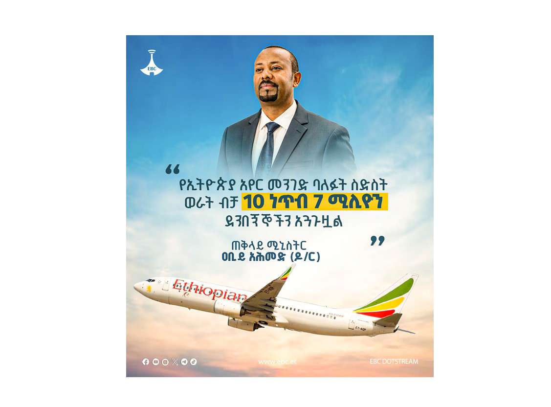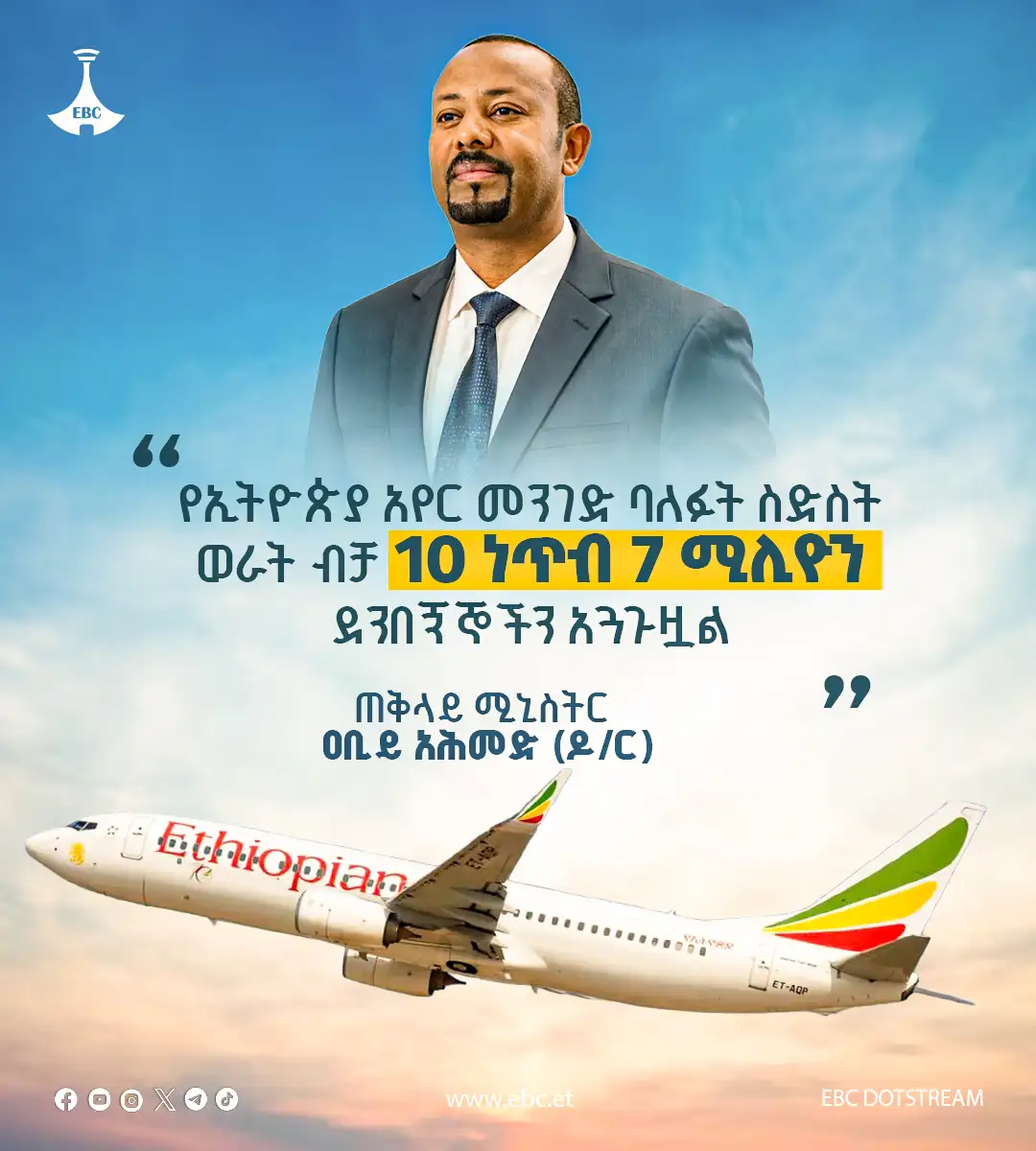 የኢትዮጵያ አየር መንገድ ማክሰኞ ጥር 26, 2018 80 የኢትዮጵያ አየር መንገድ በለውጡ ጅማሬ በዓመት ወደ 8 ሚሊዮን የሚጠጉ ደንበኞችን ያጓጉዝ ነበር። ባለፉት ስድስት ወራት ብቻ 10 ነጥብ 7 ሚሊዮን ሰዎችን አጓጉዟል። - ጠቅላይ ሚኒስትር ዐቢይ አሕመድ (ዶ/ር) አስተያየትዎን እዚህ ያስፍሩ: Send ተያያዥ ዜናዎች: ኢትዮጵያ በአርቴፊሻል ኢንትለጀንስ ማክሰኞ ጥር 26, 2018 "የነገዋ አፍሪካ ብርሃን፦"ለቀጣዩ ትውልድ የሚተርፍ የንፁህ ኃይል መሠረት ተጥሏል" እሑድ ጥር 24, 2018 የተቀናጀ የከተማ ዕቅድና ስትራቴጂ አራት ብሔራዊ ግቦች ዓርብ ጥር 08, 2018 “ኢትዮጵያም፣ ሃብቷም ከአባቶቻችን የወረስነው ብቻ ሳይሆን ከልጆቻችን የተዋስነው ነው” ጠቅላይ ሚኒስትር ዐቢይ አሕመድ (ዶ/ር) ዓርብ ጥር 08, 2018