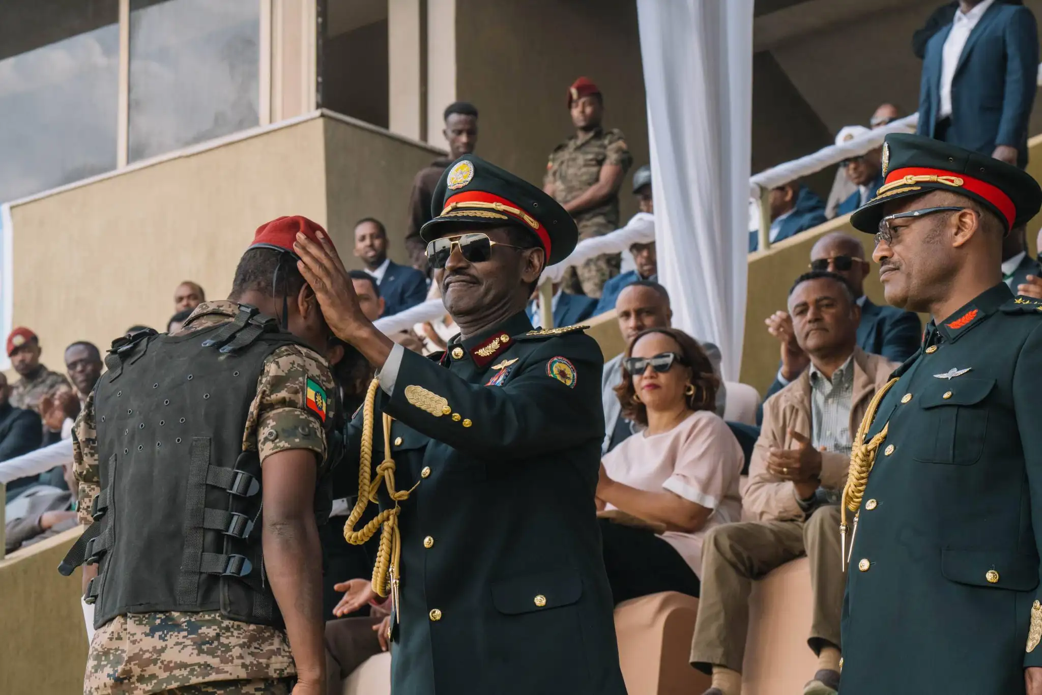 በምርቃ ሥነ-ሥርዓቱ ላይ የጦር ኃይሎች ጠቅላይ ኢታማዦር ሹም ፊልድ ማርሻል ብርሀኑ ጁላ፣ ለተመራቂዎቹ የቀይ መለዮ የመልበስ ፈቃድ የሰጡ ሲሆን፣ በስልጠናቸው ከፍተኛ ውጤት ላስመዘገቡ ተመራቂዎችም መለዮ አልብሰዋል።