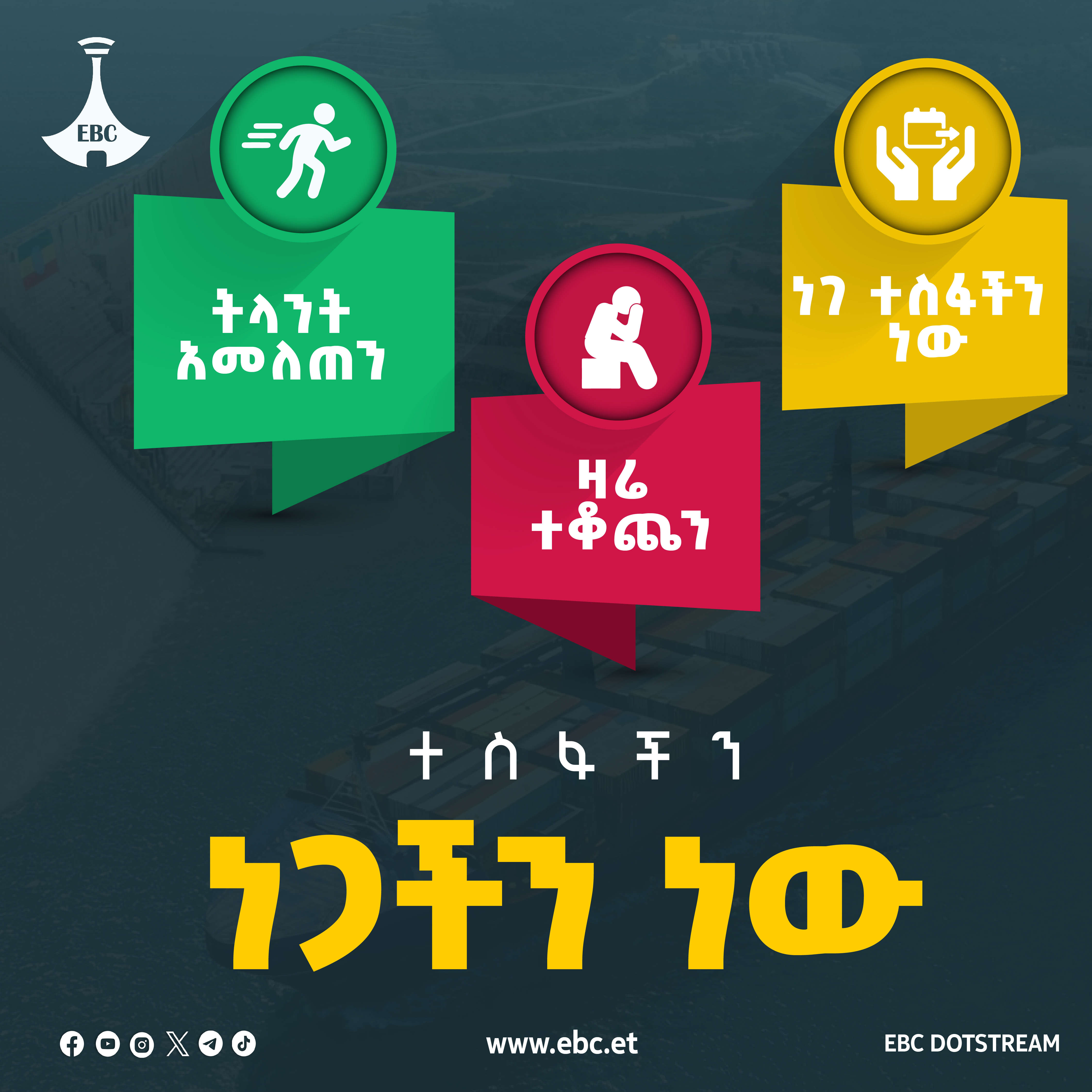 ነጋችን ተስፋችን ነው ቅዳሜ መጋቢት 05, 2018 51 አስተያየትዎን እዚህ ያስፍሩ: Send ተያያዥ ዜናዎች: ለ7ኛው ጠቅላላ ምርጫ የመራጮች ምዝገባ ዛሬ በይፋ ተጀመረ ቅዳሜ የካቲት 28, 2018 መደመር እና ዲፕሎማሲ - ኢትዮጵያ ዓለምን የምታይበት አዲስ መነጽር ሓሙስ የካቲት 26, 2018 የትግራይ ሕዝብ ራሱን በአዲስ እሳቤ መቃኘት አለበት ረቡዕ ጥር 27, 2018 በሜጋ ፕሮጀክቶች ድፍን አፍሪካ ከኢትዮጵያ ይማራል ረቡዕ ጥር 27, 2018