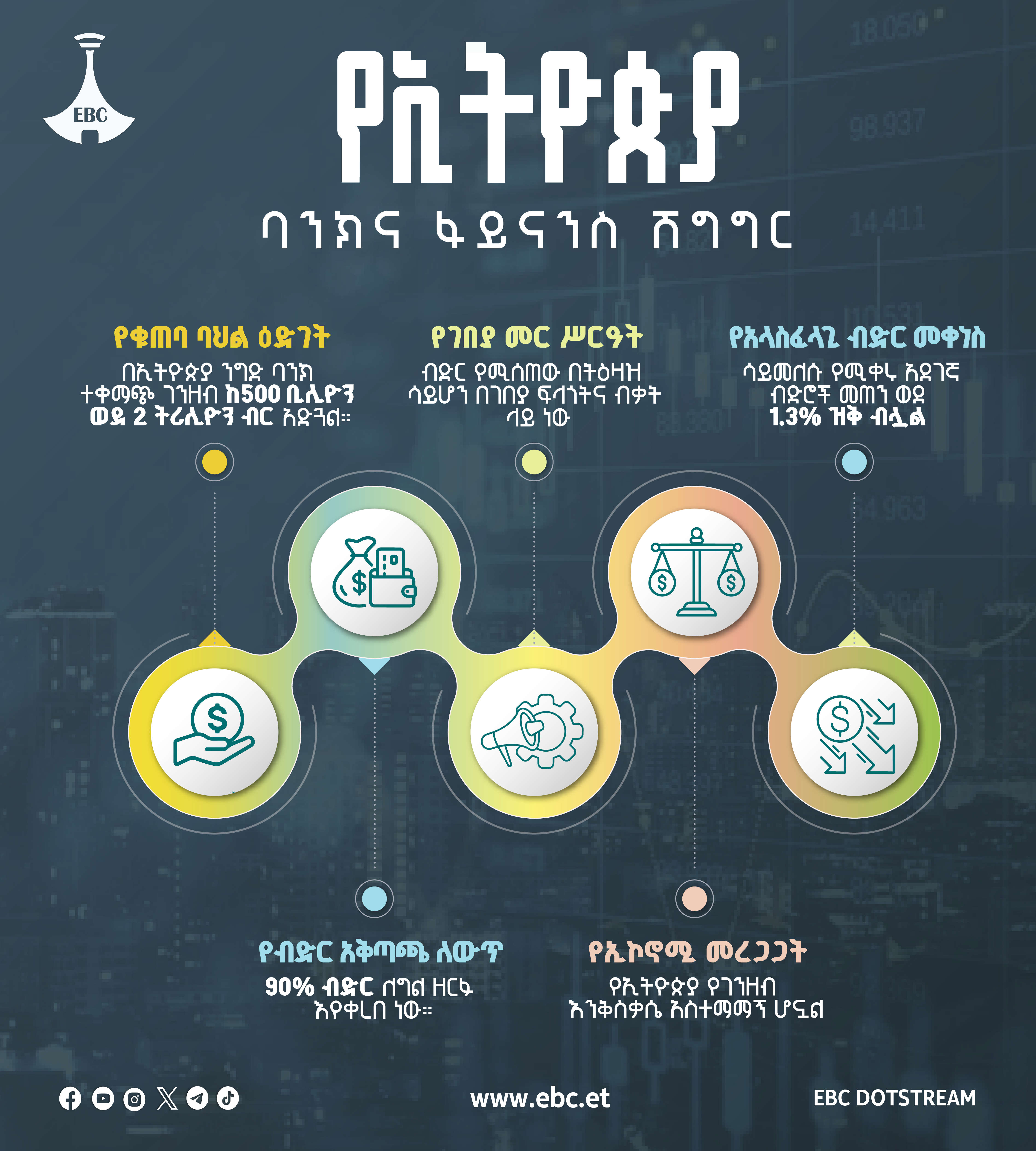 የኢትዮጵያ ባንክና የፋይናንስ ሽግግር ቅዳሜ መጋቢት 19, 2018 65 አስተያየትዎን እዚህ ያስፍሩ: Send ተያያዥ ዜናዎች: የ"ኢንቨስት ኢን ኢትዮጵያ 2026" ታሪካዊ ስኬቶች በቁጥር ቅዳሜ መጋቢት 19, 2018 7ኛው ጠቅላል ምጫ እና የሚዲያ ድልድል ቅዳሜ መጋቢት 19, 2018 ዓለም አቀፉ የኢነርጂ ቀውስ እና የነዳጅ ፍጆታን ለመቀነስ የቀረቡ 10 አማራጭ መፍትሔዎች ሓሙስ መጋቢት 17, 2018 የኢትዮጵያ ግብርና አዲስ ምዕራፍ፦ ከልማዳዊ እርሻ ወደ ዘመናዊ ምርታማነት ሓሙስ መጋቢት 17, 2018