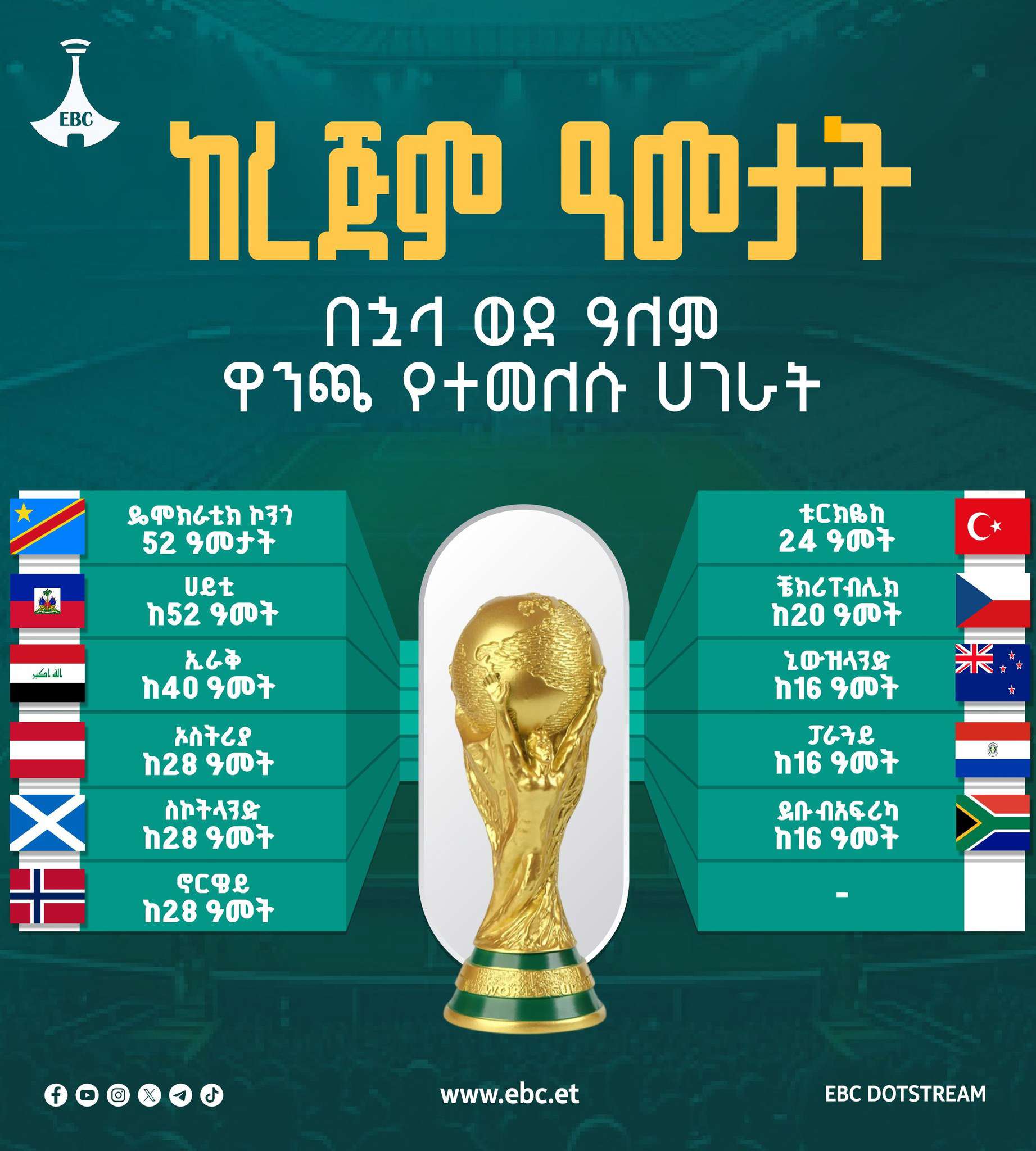 ከ52 ዓመታት በኋላ ወደ ዓለም ዋንጫ የተመለሱት ሁለት ሀገራት ረቡዕ መጋቢት 23, 2018 114 አስተያየትዎን እዚህ ያስፍሩ: Send ተያያዥ ዜናዎች: ፈተናን ወደ ዕድል፣ በፅናትና በትጋት መሻገር ፡- የጠቅላይ ሚኒስትር ዐቢይ አሕመድ (ዶ/ር) ተምሳሌታዊ አመራር ረቡዕ መጋቢት 23, 2018 የስምንት ዓመቱ ጉዞ - ከፈተና ወደ ልዕልና ማማ ረቡዕ መጋቢት 23, 2018 በአራተኛው "ኢንቨስት ኢን ኢትዮጵያ 2026" ፎረም ላይ የ13.1 ቢሊዮን ዶላር ታሪካዊ ስምምነት ያደረጉ ግዙፍ ኩባንያዎችን የትኞቹ ናቸው? ሰኞ መጋቢት 21, 2018 የ"ኢንቨስት ኢን ኢትዮጵያ 2026" ታሪካዊ ስኬቶች በቁጥር ቅዳሜ መጋቢት 19, 2018