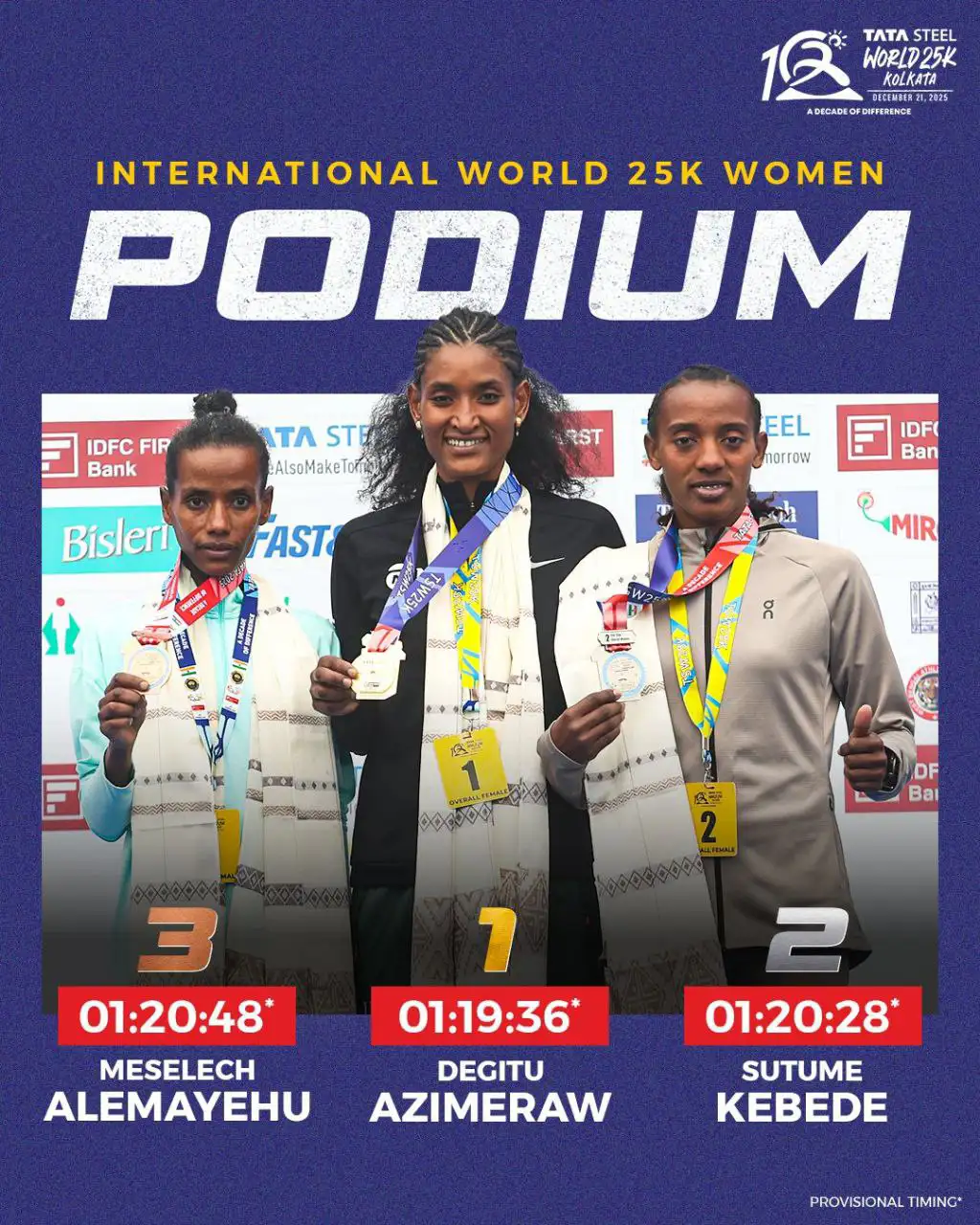 Dorgommii daandii irraa Kiiloo Meetra 25 Indiyaa, Kalkaataatti dorgmameen, atileetonni dubartootaa Itoophiyaa injifataniiru.
