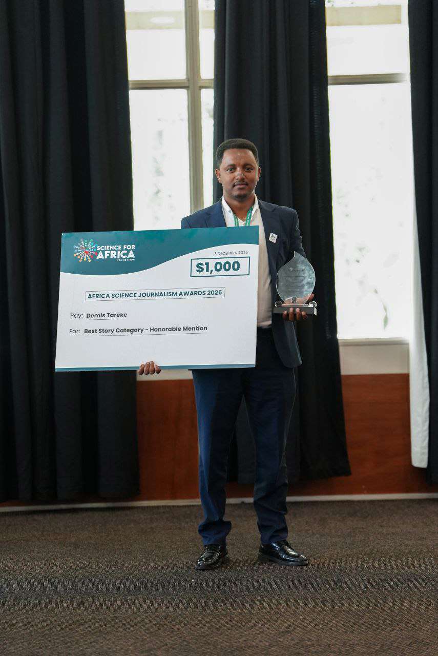 Demis Mekuria, a Chief Editor in EBC's Foreign Languages News and Current Affairs Department, was presented with an Honour Award in the Best Science Reporting category at the continental summit—the first time the WCSJ has been hosted on African soil.
