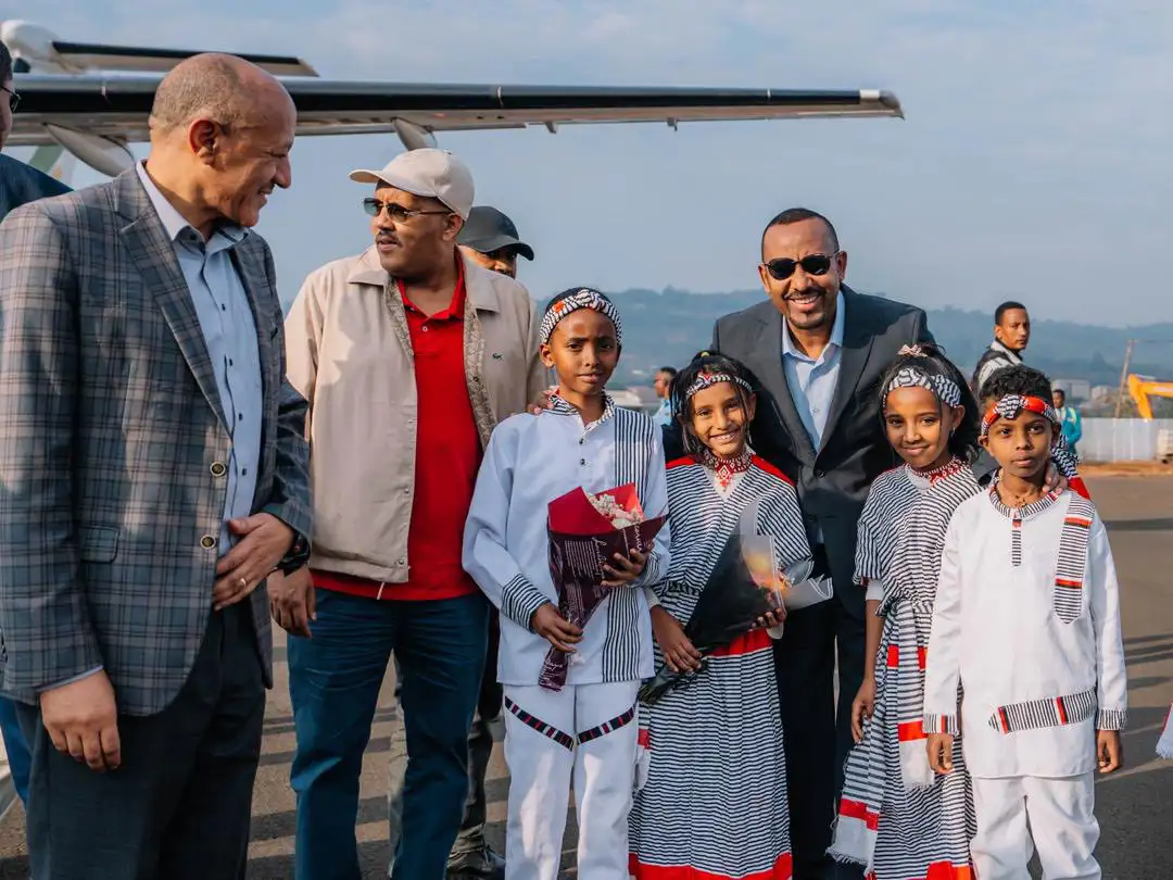 Prime Minister Abiy Ahmed received a warm welcome upon his arrival at Dembi Dolo Airport in the Kelem Welega Zone of the Oromia Region. During his visit, the prime minister and his delegation visited a banana cluster farm developed under the Bounty of the Basket (Ye Lemat Tirūfat) initiative.