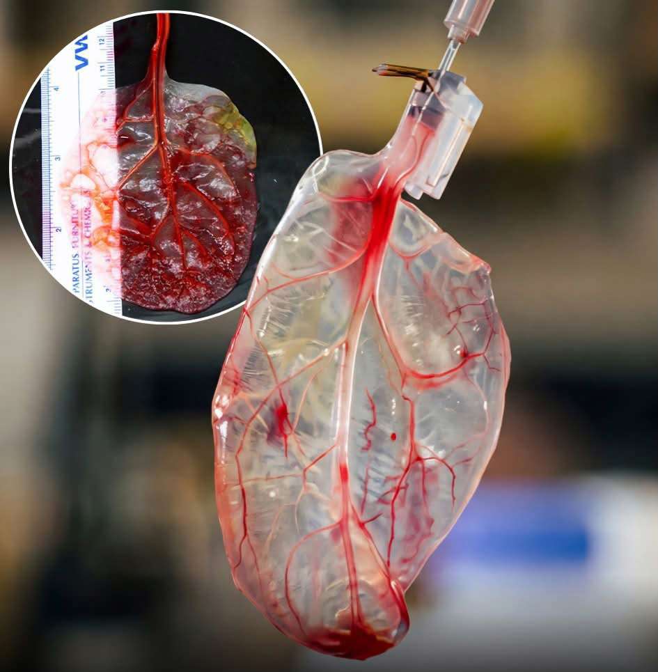 After seeding human heart cells onto the spinach structure, the tissue began to beat like a real muscle. The leaf’s natural vein network successfully transported fluids and microbeads, effectively mimicking the complex blood flow required to sustain healthy human organs.
